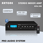 The KPA-468 amplifier has integrated player of MP3 and Bluetooth, the wireless playback is available from cell phone or laptop Bluetooth device. The big LED screen display shows USB, SD, FM tuner or Bluetooth status. High quality of stereo sound is given to the audio system, and make adjustment on treble, bass volume control both for microphone and music. It is able to make balance control for left and right channel to get desired mixer sound.