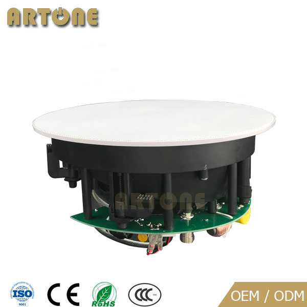 HC-161Z is a premium large power inceiling speaker with RMS power 100W, coaxial 6.5 inch woofer and 1 inch pivot tweeter, allow it gives high fidelity background music for commercial audio or home background music system. It is also good for 7.1 home theater or cinema 7.2 sound system, the angled speaker gives large power of sound to listener. Frameless design of magnetic attach grille. Special deflected design of speaker frame, makes speaker in angled position, deliver the directional sound to hearing areas more accurate. 4 dog leg clips make it easy and firm mount to ceiling. Cutout size Diameter ¢208mm. It is ideal to be adopted for home background music system, home theater or cinema system, luxury hotel or holiday inns.