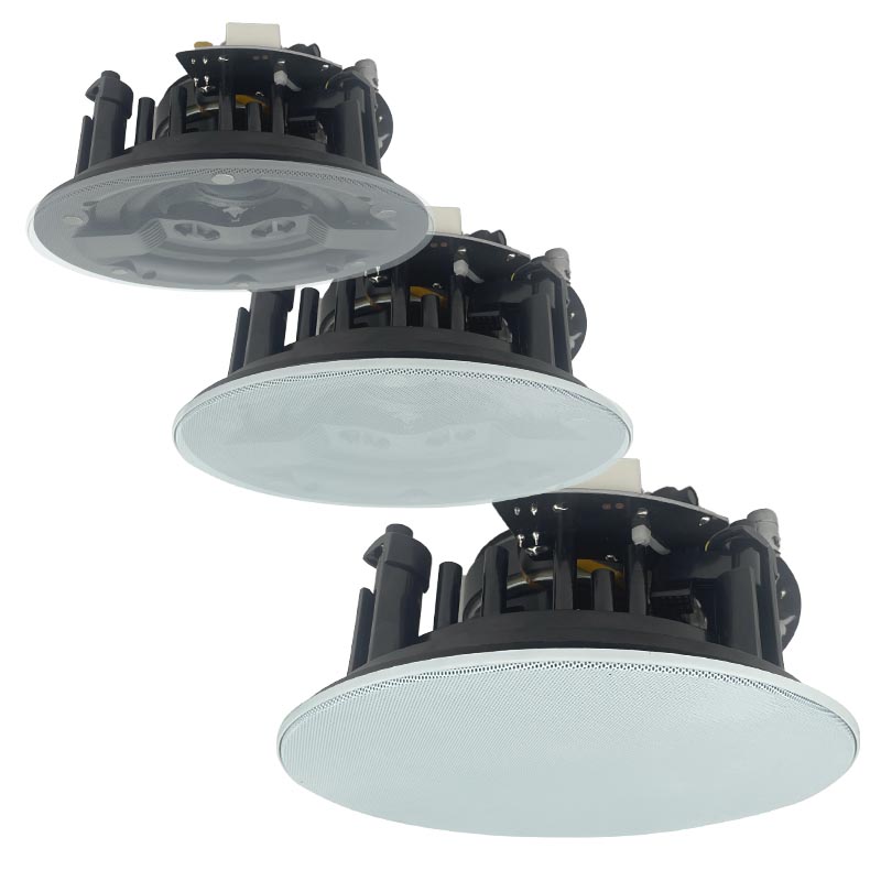 High quality frameless ceiling speaker with wide dispersion CS-225 CS-226 and CS-228, designed in ABS material, with 5.25 inch, 6.5 inch and 8 inch woofer and dual 1'' tweeter, rated power 20W, 40W and 60 Watts, use for commercial audio system or public address system (pa system) of input voltage 100 volt and 8 ohm. Fast installation with 4 dog ear clamp. It is durable and practical and very competitive to satisfy sound system at economical budget.